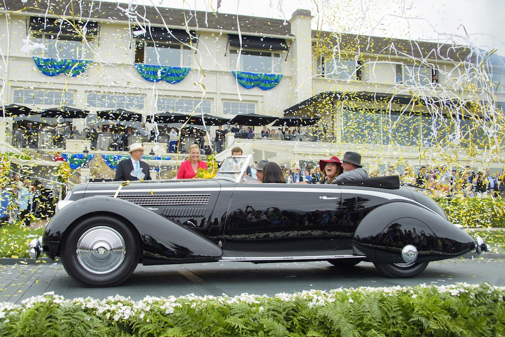 Au matin, le golf de Pebble Beach devient le centre du monde « classic ». Après une journée de conciliabules, à 17h00, dans un ouragan de confettis jaunes et de serpentins blancs, les dieux (les juges du concours…) désignent du doigt la beauté de l’année : le Best of Show de Pebble Beach 2016 est une Lancia Astura cabriolet Pinin Farina de 1936.